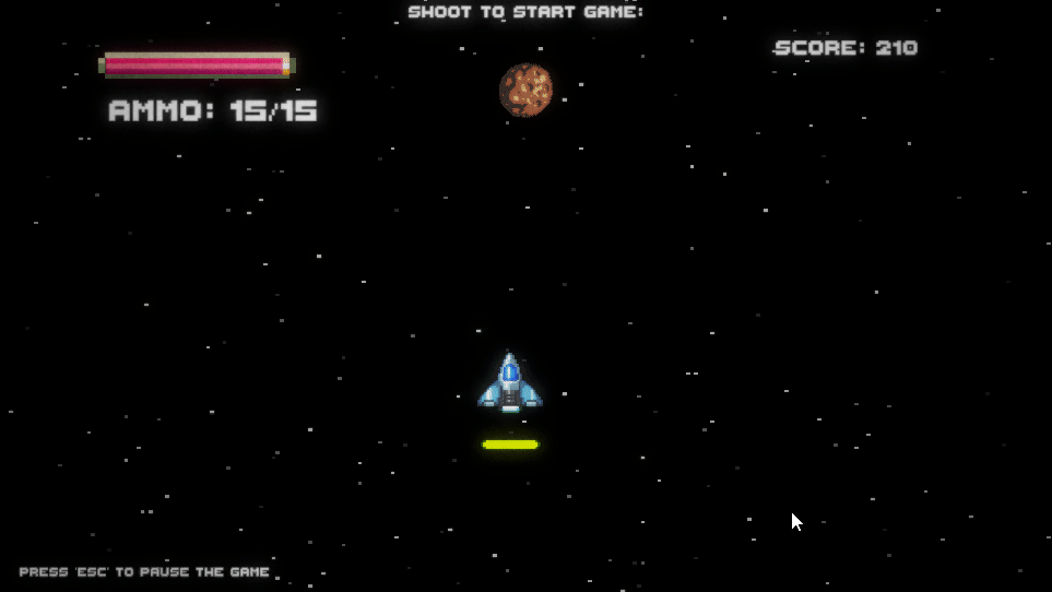 This space game takes inspiration from classic retro space shooter games. The player's goal is to survive intense battles against alien fleets, dodging their laser fire while unleashing a series of your own devastating attacks, with a fully implemented retro soundtrack for increased nostalgia. Utilizing a wave-based system for dynamic difficulty scaling and unique enemies.